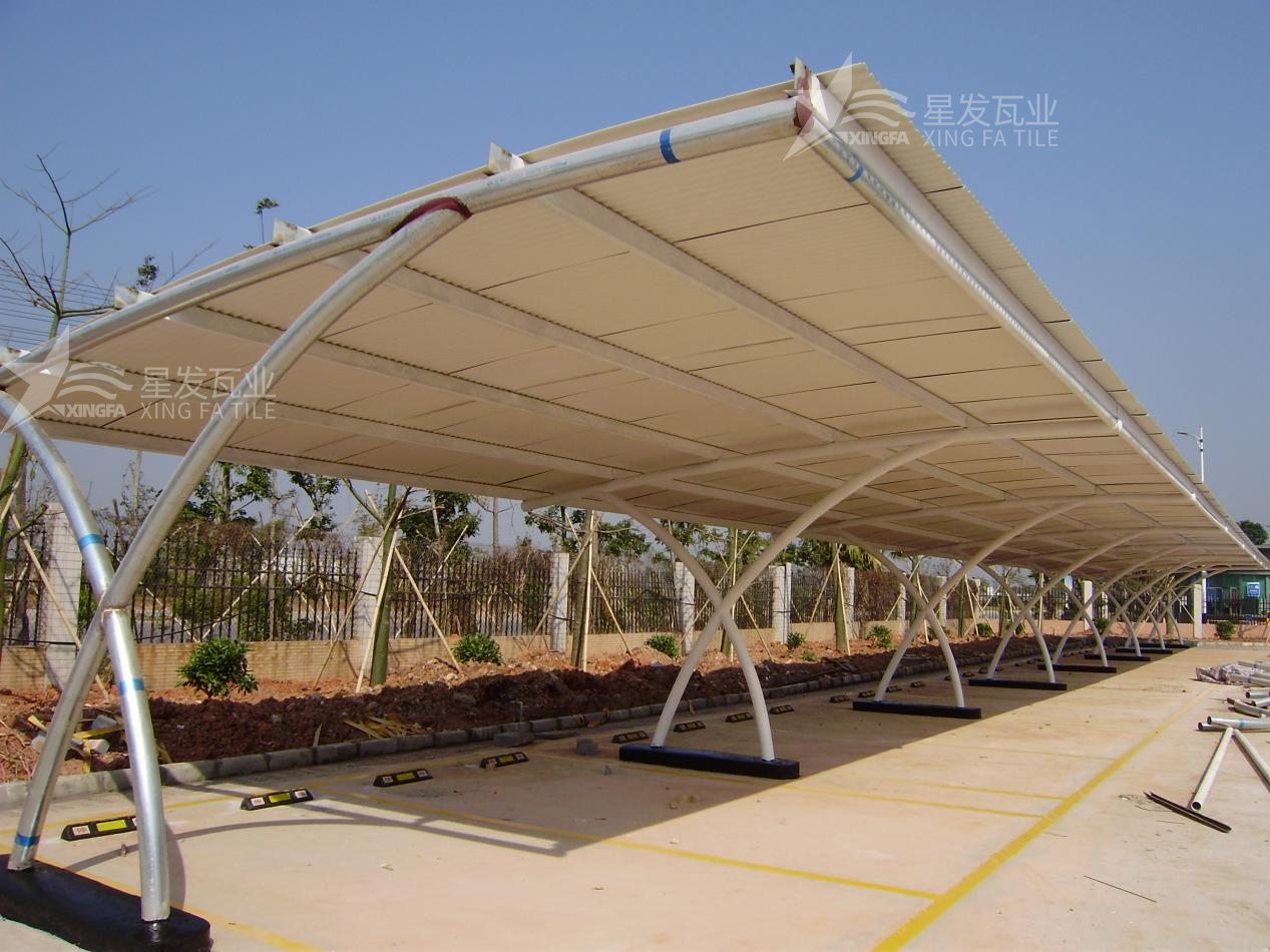車棚和停車場:由于PVC瓦的安裝簡便性和防水性能,它們也常用于車棚、停車場和露天停車位的屋頂覆蓋。它們能夠有效地保護車輛免受日曬、雨水和其他天氣因素的影響。