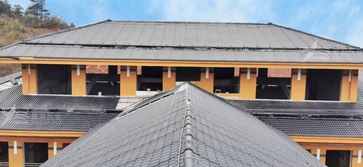 其次,合成樹脂瓦的結(jié)構(gòu)設(shè)計(jì)也有助于提供卓越的隔音效果。瓦片之間的搭接和連接非常緊密,形成一個(gè)堅(jiān)固的整體。這種結(jié)構(gòu)可以有效地阻止聲音的傳播,減少噪音的穿透。合成樹脂瓦的單片面積較大,安裝固定簡單,只要搭接合理,安裝好之后就形成了一個(gè)完美的屋面系統(tǒng),不僅能夠提供優(yōu)異的防水和防風(fēng)效果,還能有效地隔離外界噪音,為居住者創(chuàng)造一個(gè)寧靜的居住環(huán)境。