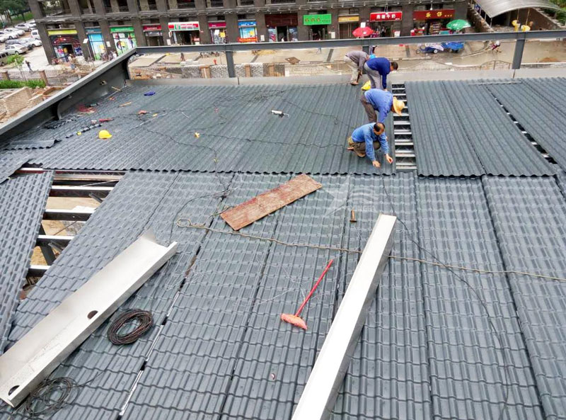 瓦片排列:從屋頂或墻面的底部開始,按照預定的排列方案一層層地安裝合成樹脂瓦片。使用建筑膠或專用膠水將每塊瓦片牢固地粘貼在基層上。