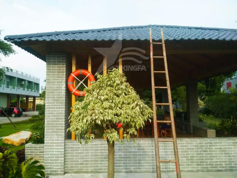 就安全性而言,樹脂瓦表面光滑,容易清潔,只需雨水沖刷即可使其保持干凈,且不容易積雪。盡管樹脂瓦本身相對輕盈,但其獨特的連接設(shè)計能夠在惡劣天氣條件下保持牢固,即使在臺風(fēng)等極端情況下也難以受損。因此,選擇樹脂瓦覆蓋木屋結(jié)構(gòu)不僅可以增強屋頂?shù)陌踩裕€能夠提供美觀和耐久的保護。