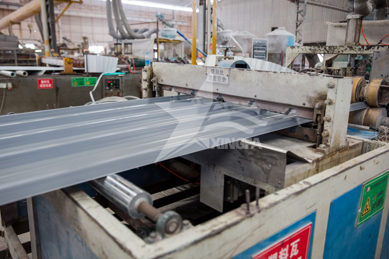 擠出成型后的片材需要經(jīng)過一系列的后續(xù)加工才能成為我們常見的樹脂瓦。首先是對(duì)擠出成型后的片材進(jìn)行切割,使其長(zhǎng)度符合實(shí)際需求。然后,對(duì)切割好的片材進(jìn)行壓型,即將其放置在模具上,通過加熱和壓力使其形成波浪形的表面。這一步的目的是使樹脂瓦表面呈現(xiàn)出自然的瓦楞紋理,提高其美觀度和抗壓性能。壓型好的片材進(jìn)入恒溫恒濕的設(shè)備中進(jìn)行固化,使其內(nèi)部的PVC分子鏈逐漸交聯(lián),從而提高其硬度和強(qiáng)度。