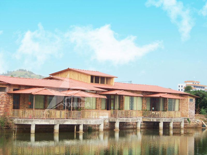 輕盈易施工: 相較傳統(tǒng)瓦材,合成樹脂瓦更輕便易搭建,提高了施工效率,降低了綜合成本。