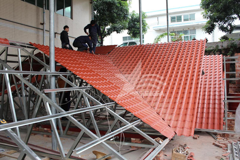 輕質(zhì)高強(qiáng)度: 樹脂瓦相對(duì)于傳統(tǒng)的瓦材料來說比較輕巧,但卻具有較高的強(qiáng)度。這使得施工過程更為便利,減輕了屋頂結(jié)構(gòu)的負(fù)擔(dān),同時(shí)也有助于提高建筑的整體安全性。