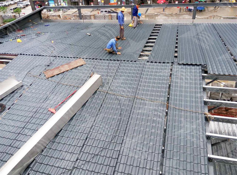 第二:對稱安裝保持波形一致: 為確保正脊瓦波形相同,必須在屋面兩個斜坡上同步對稱地安裝合成樹脂瓦,提升整體美觀度。